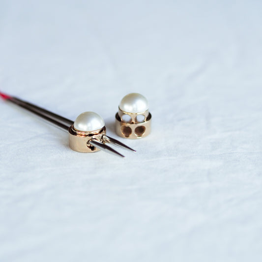UtsolgtPinnestoppere i gull med perle