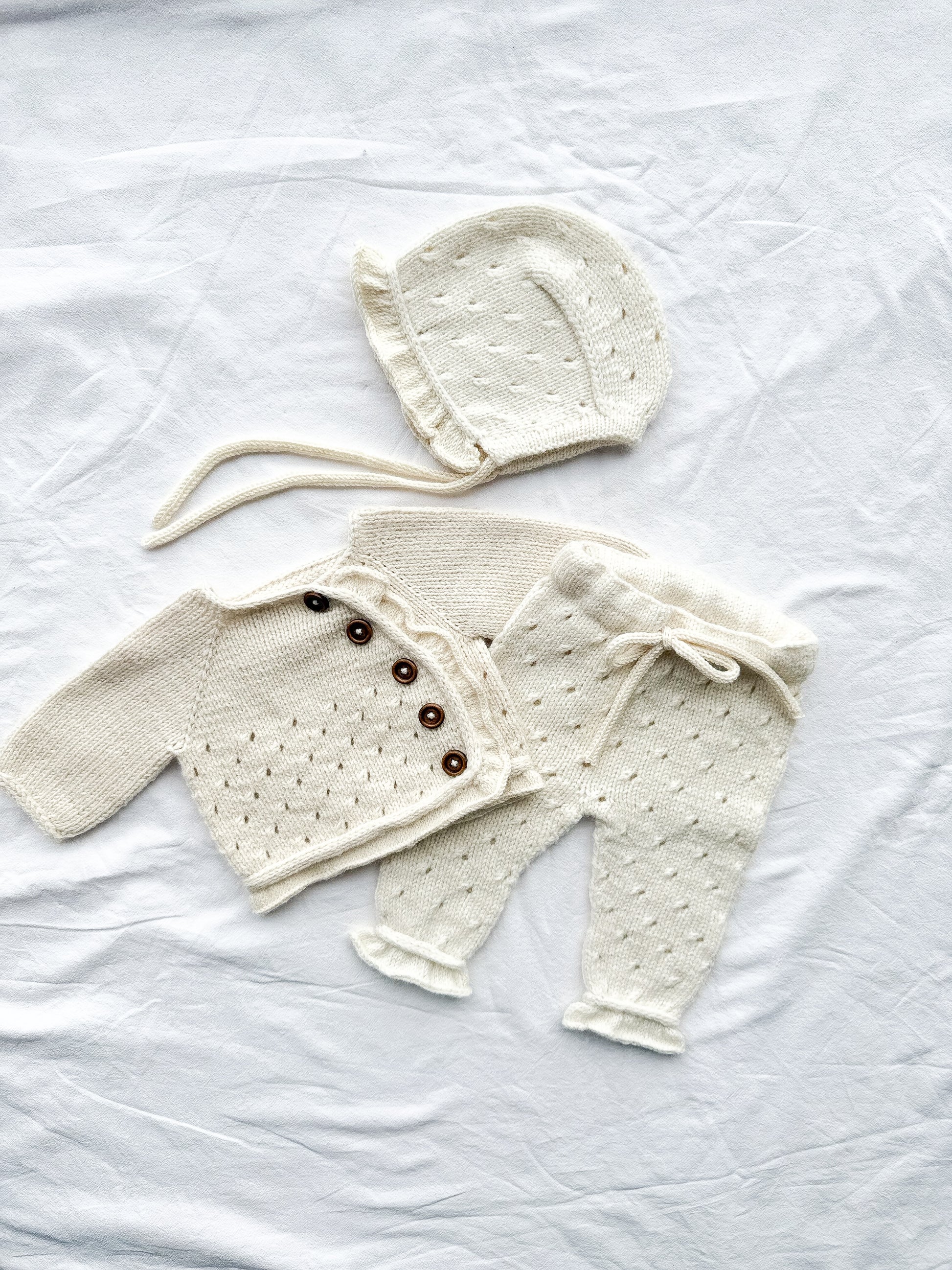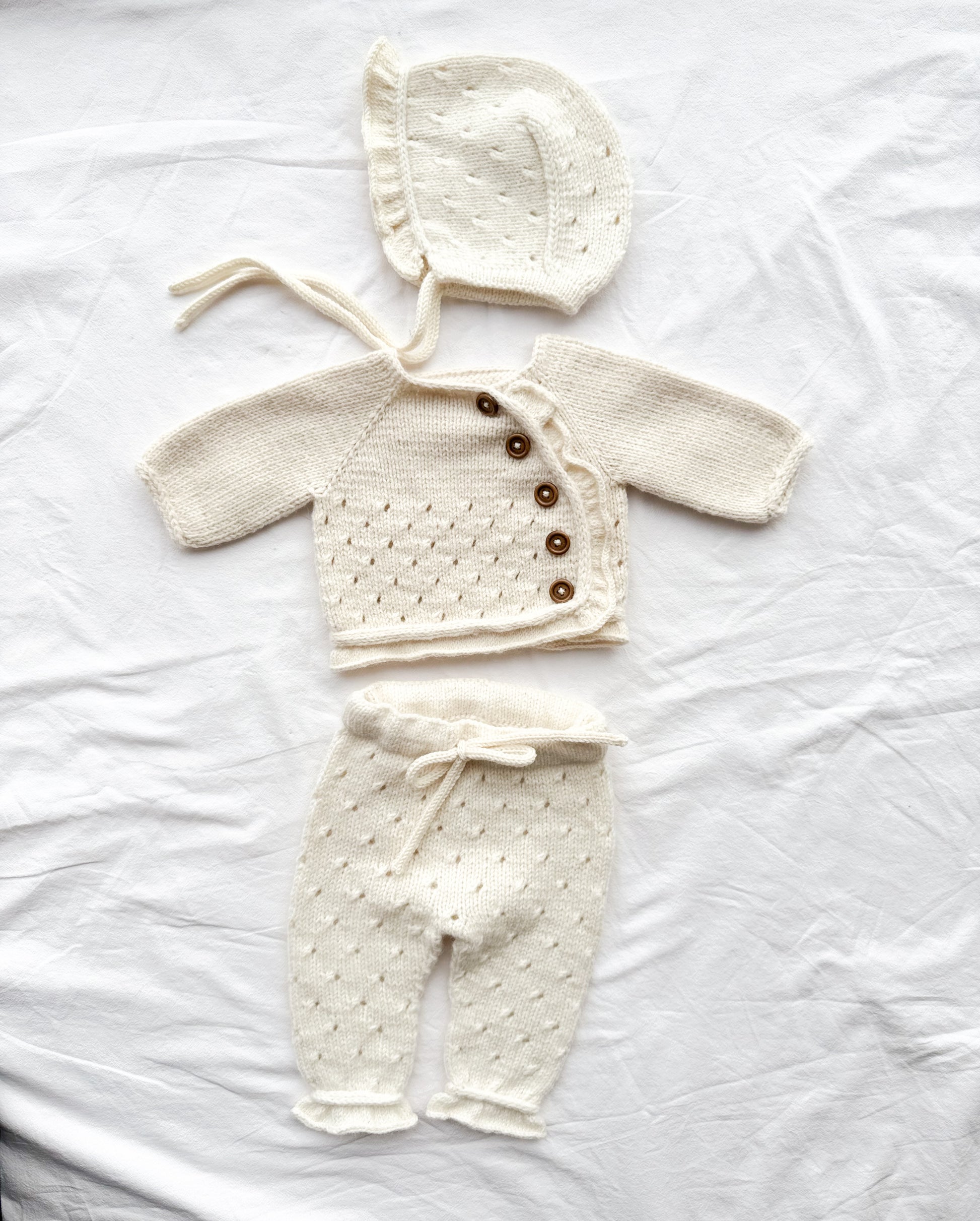 Det første settet et nyfødt barn får, blir ofte tatt vare på for alltid. Et lite minne om den største dagen. Dette hentesettet er laget for akkurat det øyeblikket, mykt, tidløst og komfortabelt, slik at den lille kan møte verden på den aller fineste måten.